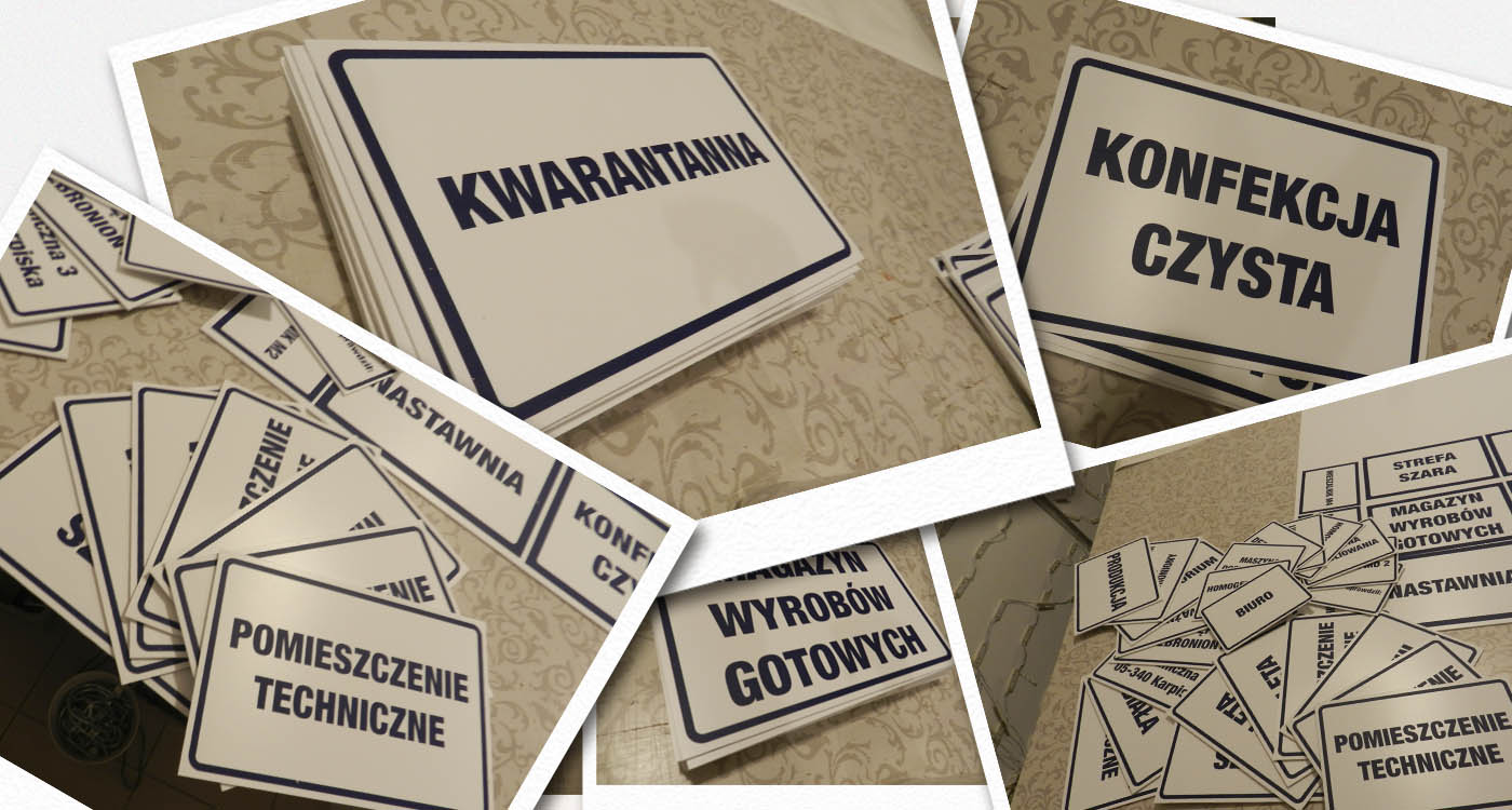 Tabliczki informacyjne 30x15 cm i 15 x 20 dla zakładu produkcyjnego.